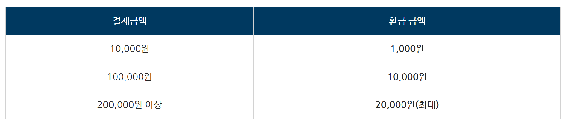 - 최소 10,000원 이상 결제 시 1,000원 단위로 환급