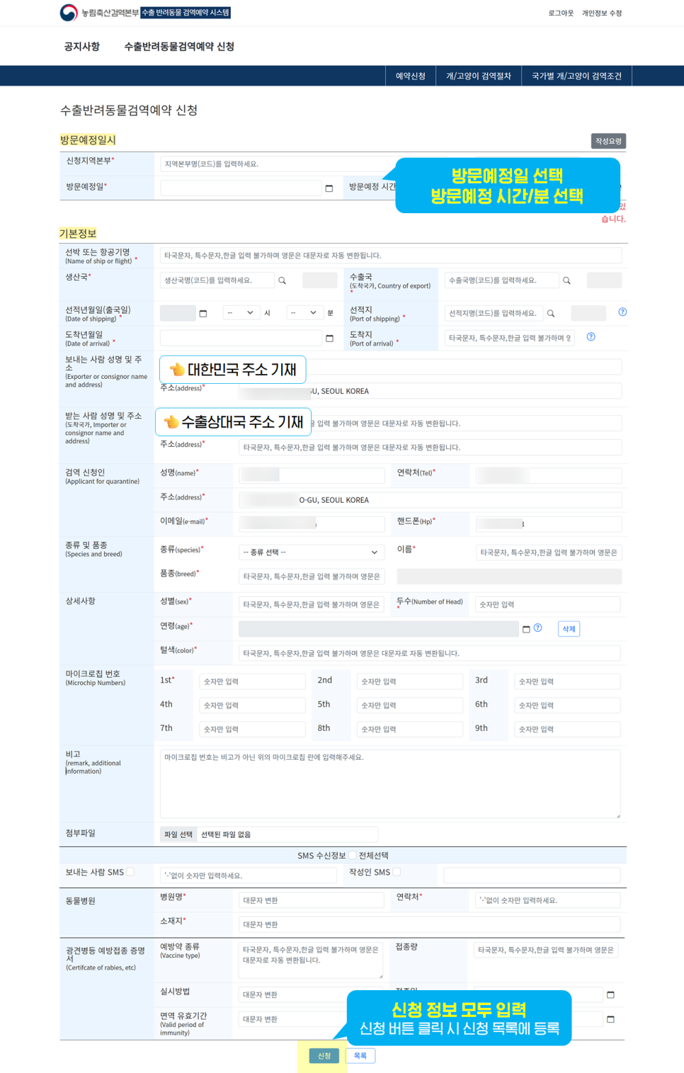 [③ 수출반려동물 검역예약 신청]