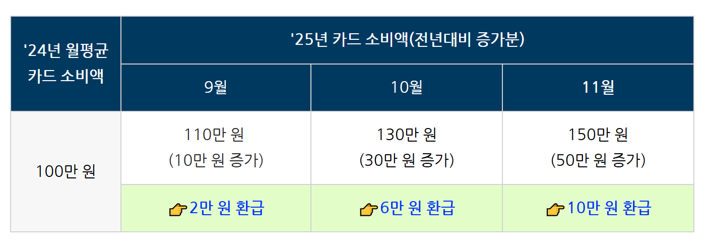 - 9~11월 소비증가분은 다음달 매 15일 지급