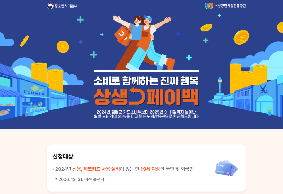 본 포스팅은 상생페이백 누리집과 중소벤처기업부 보도자료 『쓸수록 돌려받는 '상생페이백', 9월 15일부터 신청 시작… 최대 30만원 환급』, 등을 바탕으로 작성되었습니다.
