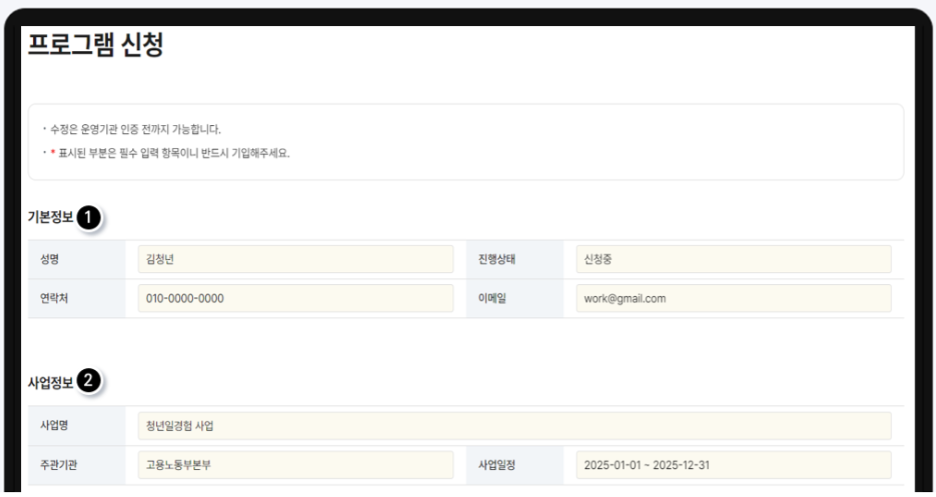 청년일경험 포털에서 미래내일 일경험 사업을 신청할 수 있습니다.