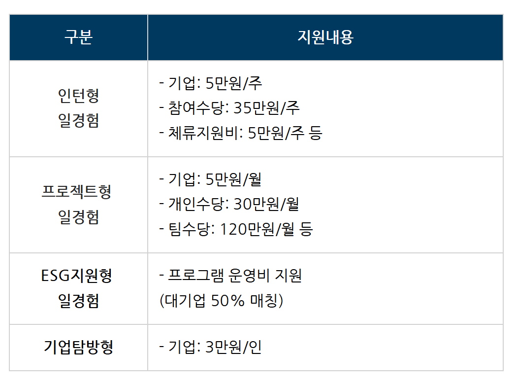 인턴형, 기업탐방형, 프로젝트형, ESG지원형 4가지 유형 중 하나를 선택해서 참여할 수 있습니다.