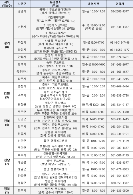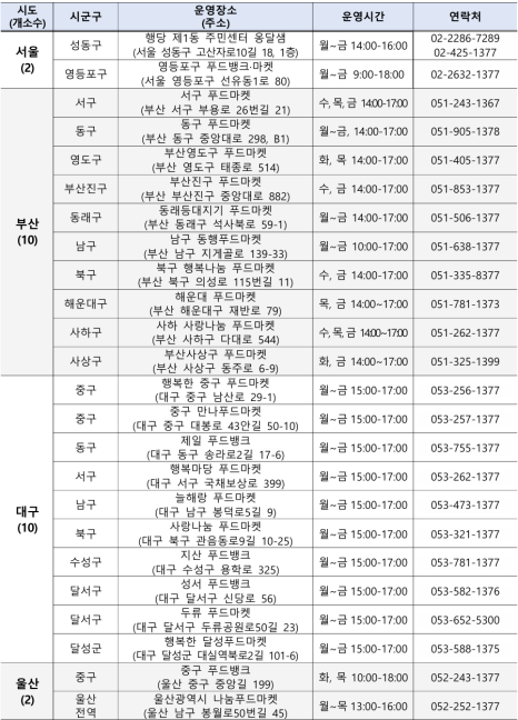 (주민센터, 사회복지관, 푸드뱅크, 푸드마켓 등)