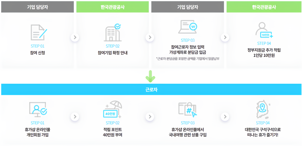 ③ 기업 근로자 '휴가샵(전용 온라인몰)'에 적립금 40만 원 자동 충전