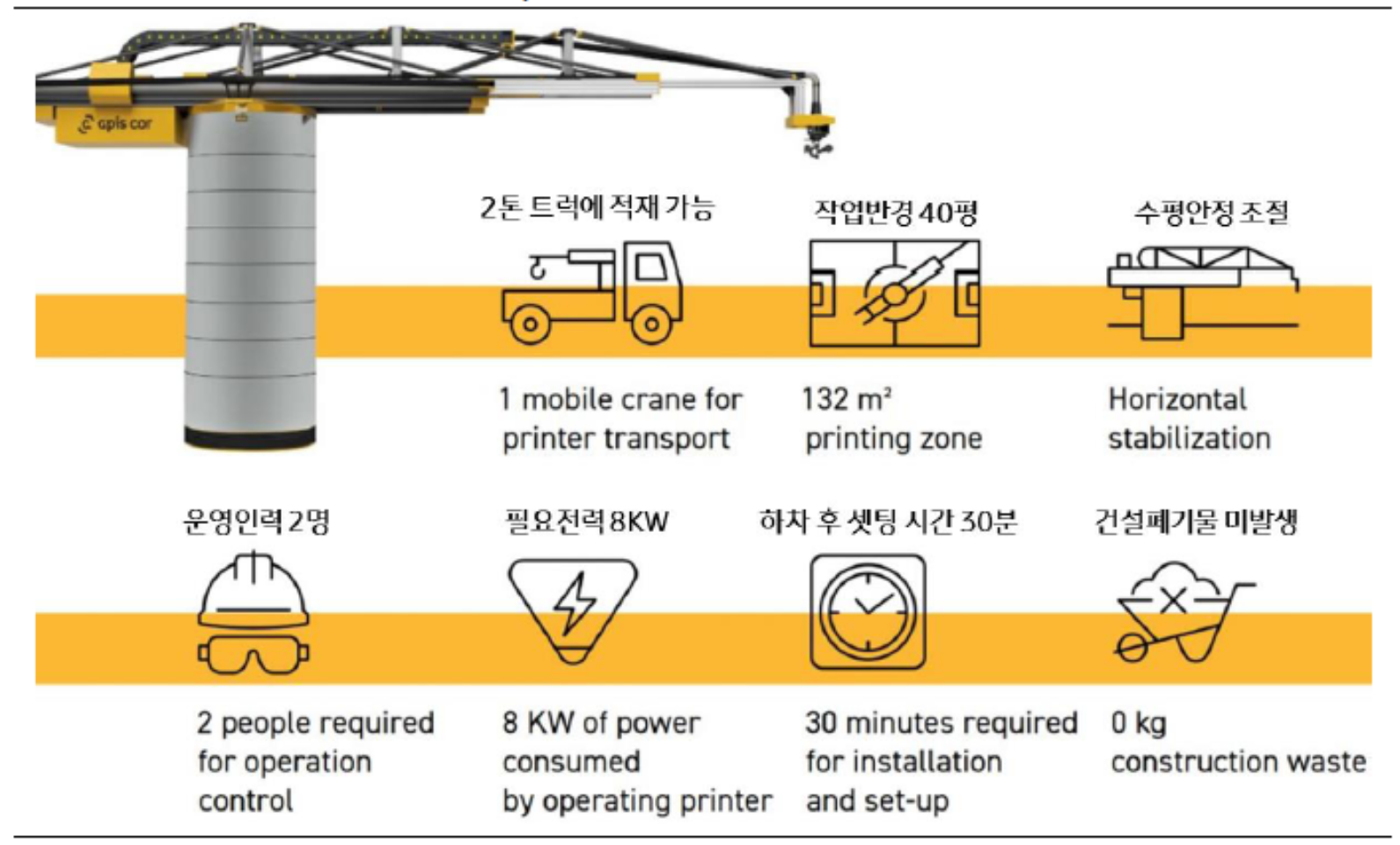 특히 적층가공 특성상 건축폐기물 발생이 거의 없어 시멘트 생산과정에서 발생하는 탄소배출 감소와 건축과정에서 발생하는 건축폐기물 감소도 기대됩니다.