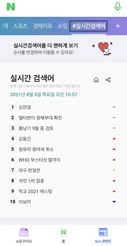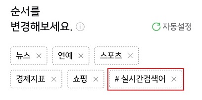 3. '실시간검색어' 메뉴 순서가 바뀌었습니다.