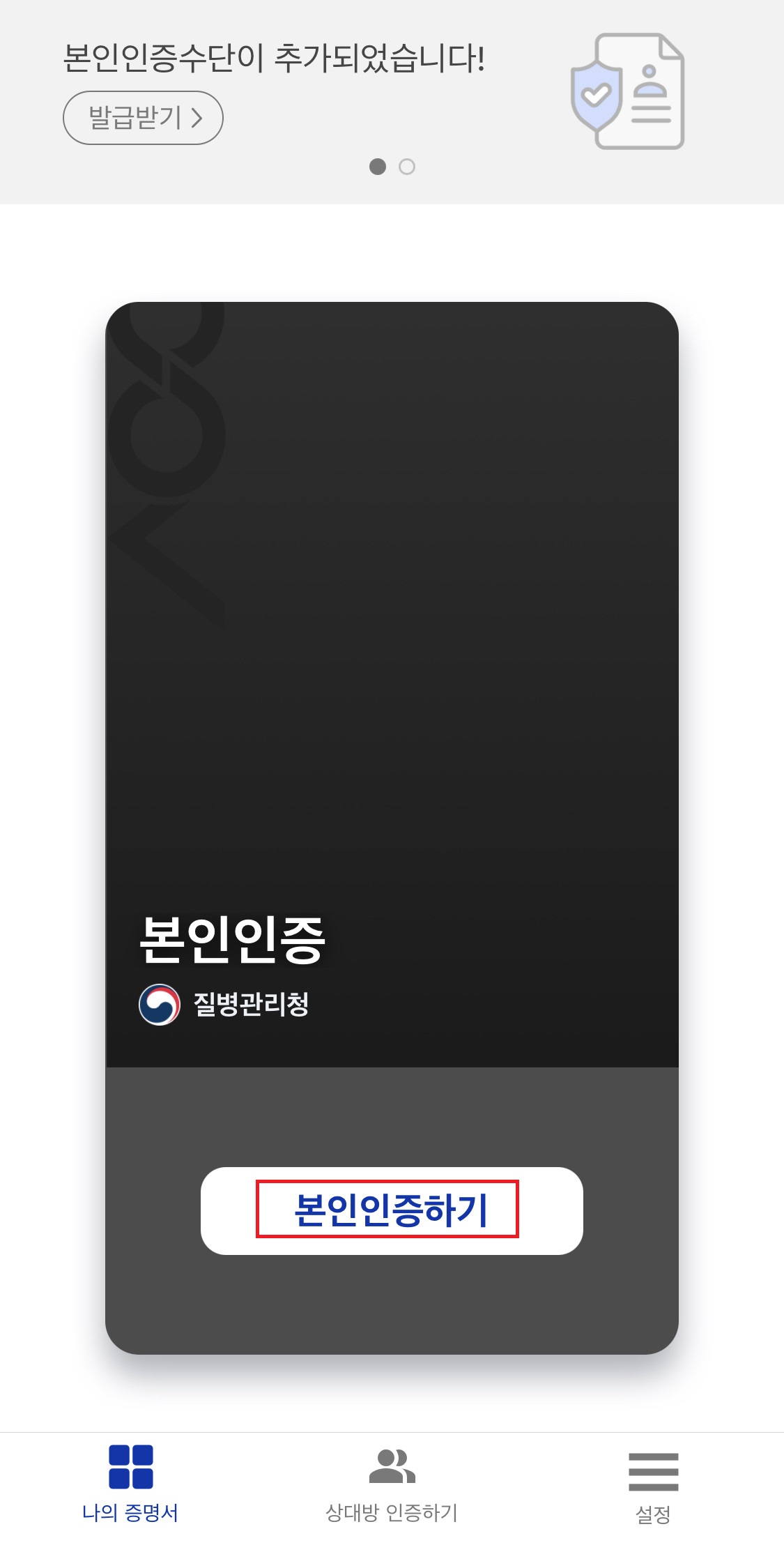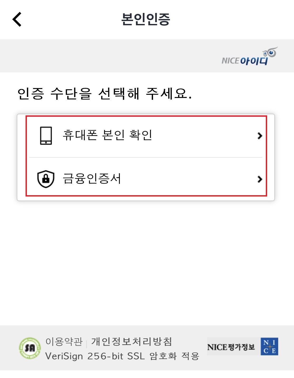 7. '본인인증하기'를 누르고, 인증 수단을 선택하고 인증을 합니다.