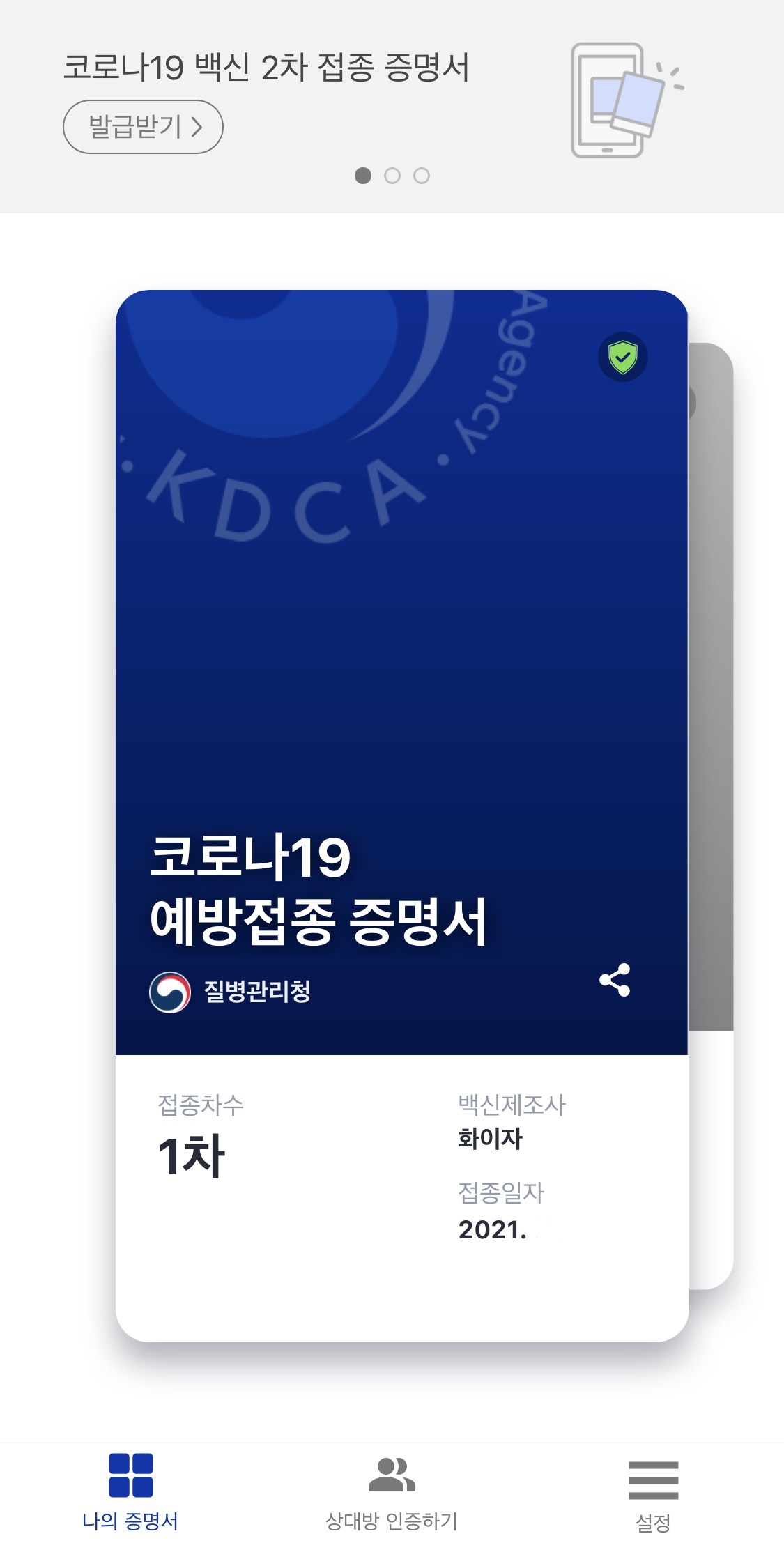 8. '코로나19 예방접종 증명서'를 확인할 수 있습니다.