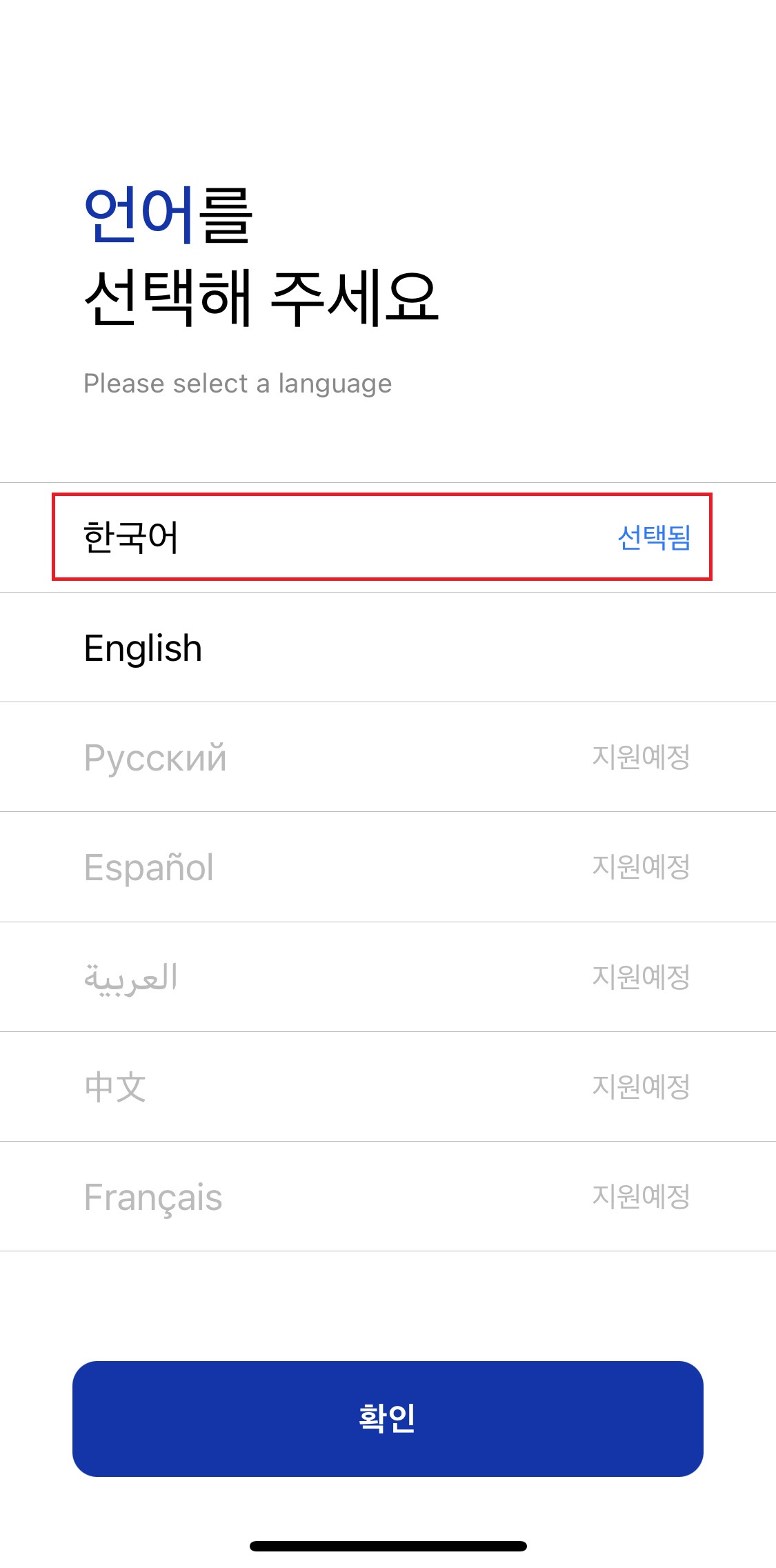 '한국어' 선택
