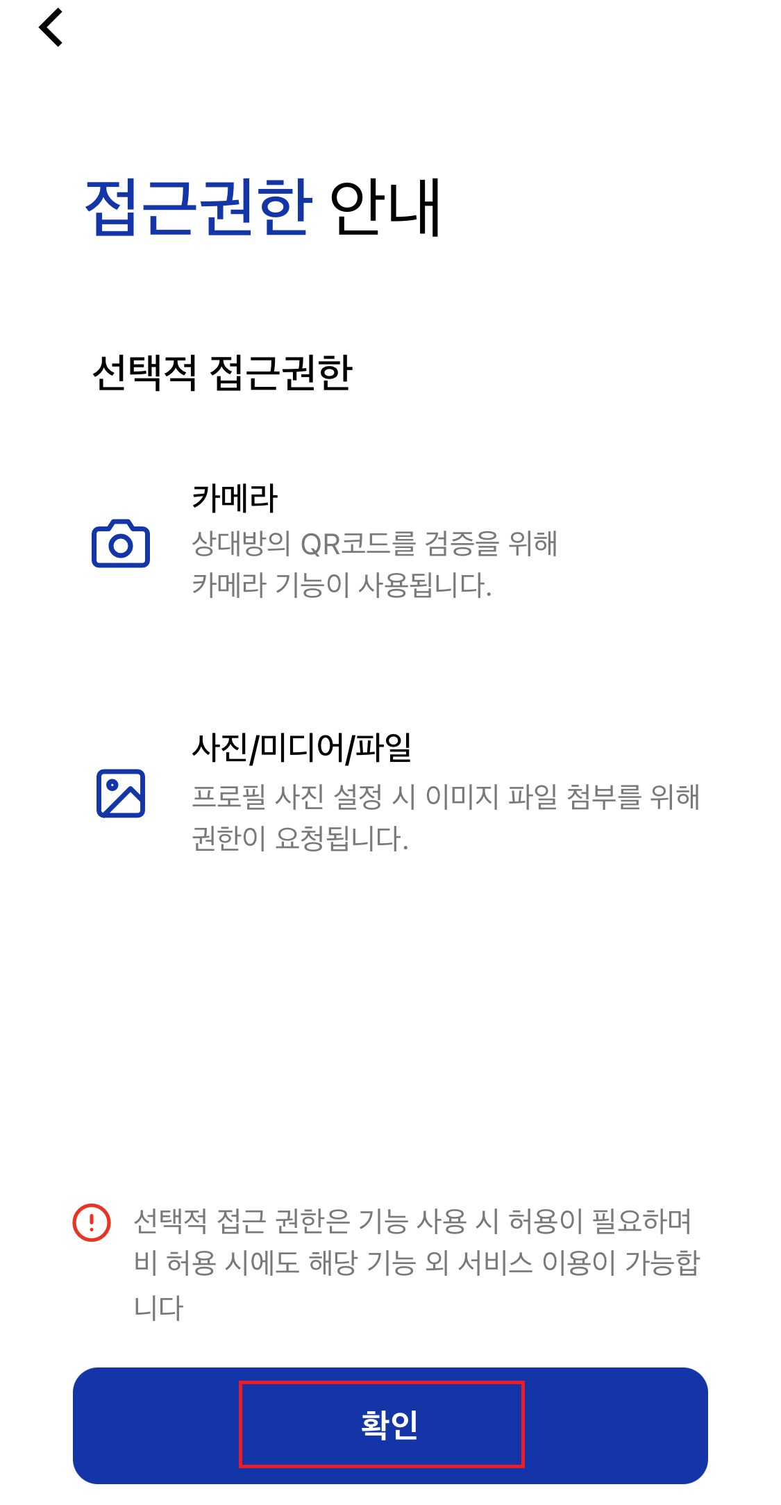 4. '접금권한 안내' 확인을 누릅니다.
