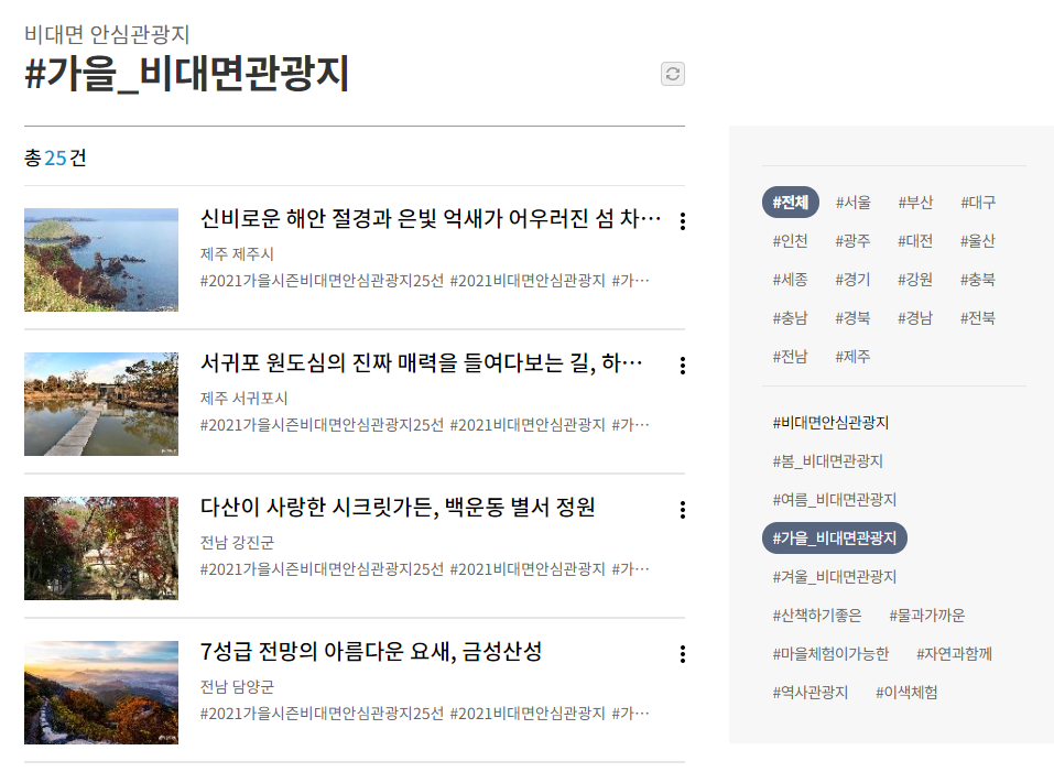 비대면 안심관광지 목록 | 대한민국 구석구석