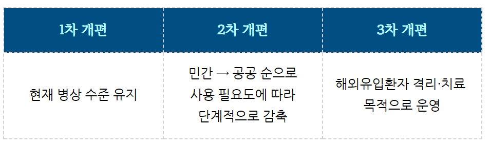 *유행 상황 안정화 시 시설 본래 기능 회복하도록 점진적으로 전환 예정