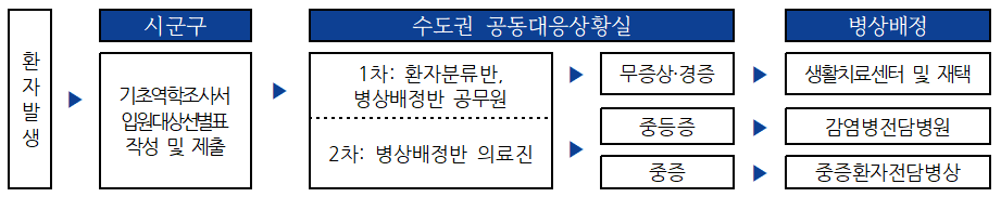 기존에는 환자의 증상, 기저질환(투석·정신질환 등), 특수상황(임신 등), 가용병상 등을 고려해 확진자 격리치료 중심으로 중증도에 따라 병상을 배정했었습니다.