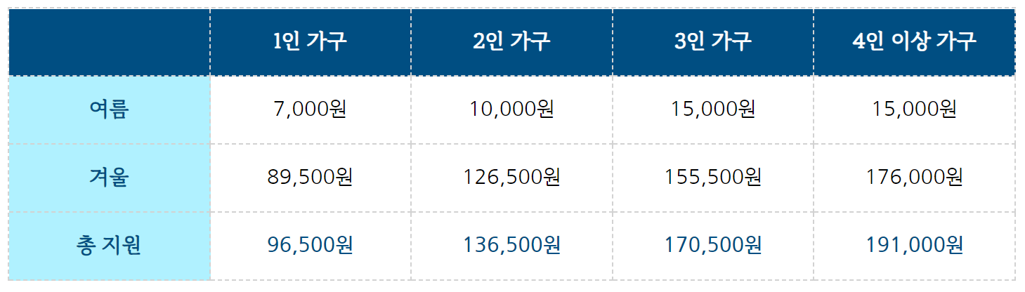 지원받은 지원금으로 전기와 도시가스는 물론 지역난방, 등유, LPG, 연탄까지 구입할 수 있습니다.