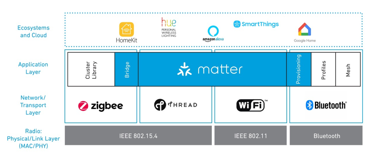매터가 적용되면 스마트홈 시장을 주도하는 주요 기업들(구글, 애플, 아마존, 삼성전자 등)의 표준과 연동되어 매터 브리지(Matter bridge)를 통해 플랫폼에 구애받지 않고 모든 스마트 디바이스들을 연동할 수 있습니다.