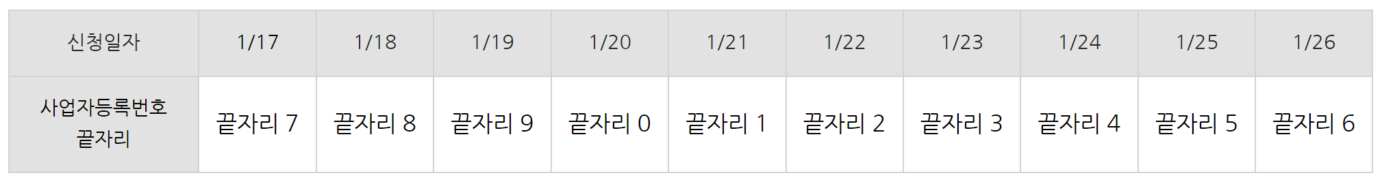(사업자등록번호 끝자리가 1인 업체는 1/21 신청)