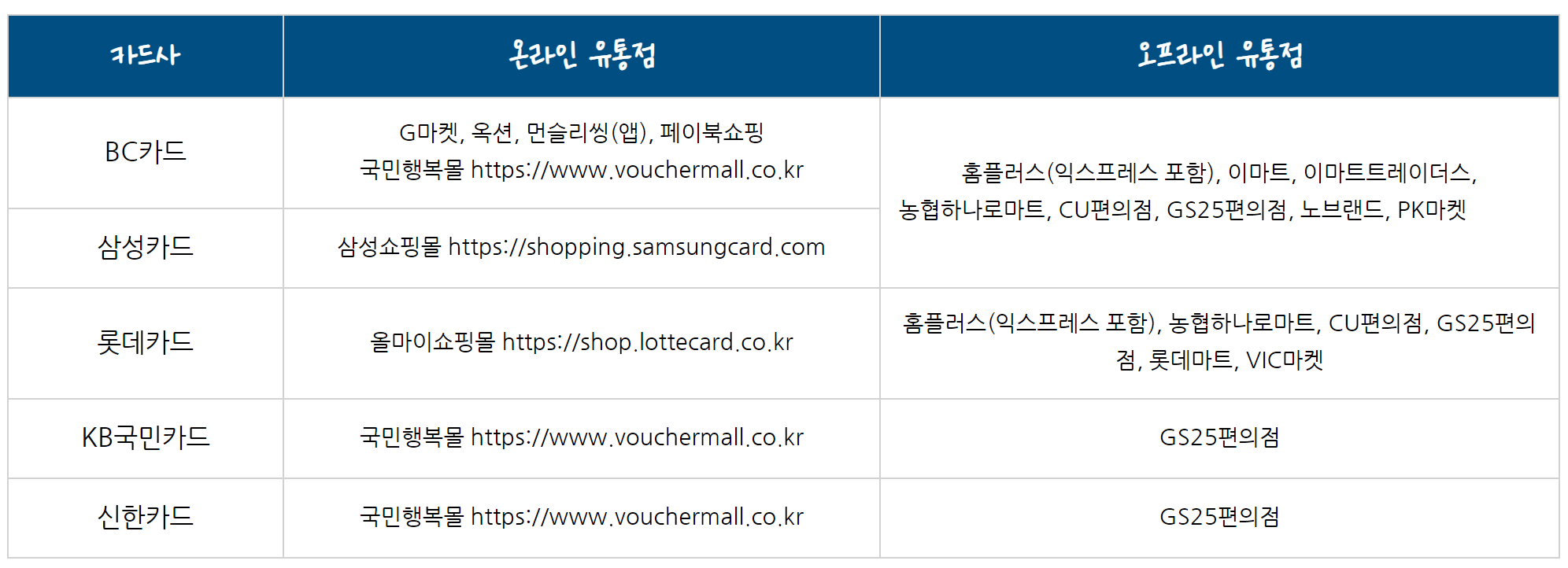 <결제 가능한 유통점>