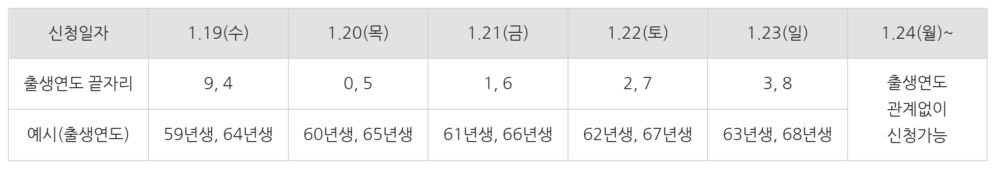 동시접속 분산을 위해 대표자 출생연도 끝자리를 기준으로 첫 5일간은 5부제를 시행하며, 5부제가 종료되는 시점(1.24.~)부터는 누구나 신청할 수 있습니다.