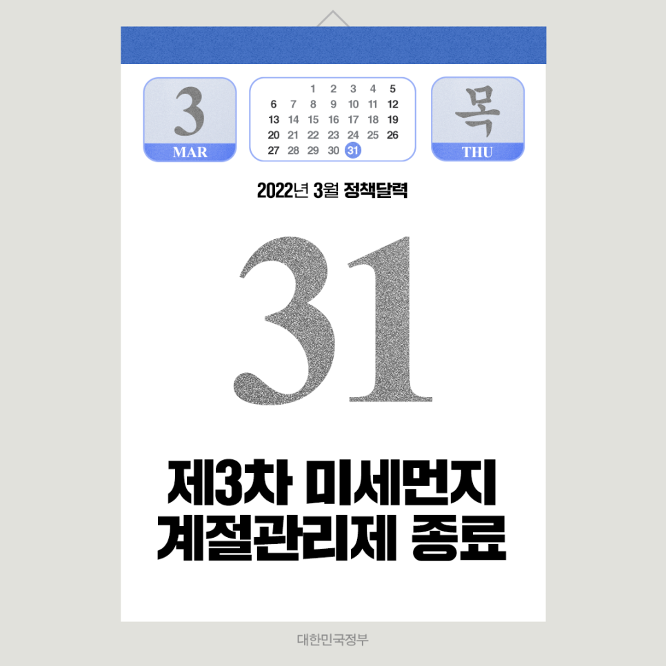 정부는 2021년 12월 1일부터 2022년 3월 31일(목)까지 고농도 미세먼지 발생을 줄이고 국민건강을 보호하기 위해 제3차 미세먼지 계절관리제를 시행하고 있습니다.