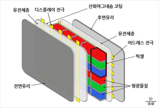 PDP는 2장의 얇은 유리판 사이에 작은 셀을 다수 배치하고, 셀 안에 플라즈마를 넣습니다.
