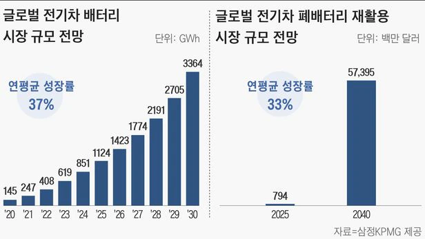 업계에서는 본격적으로 전기자동차용 폐배터리가 쏟아져 나오는 2025년 이후 리사이클링 시장이 활성화될 것으로 전망하고 있습니다. 폐배터리 재활용 동맹이 본격 가동되면 기술 표준을 선점하는 데도 긍정적으로 작용할 전망입니다.
