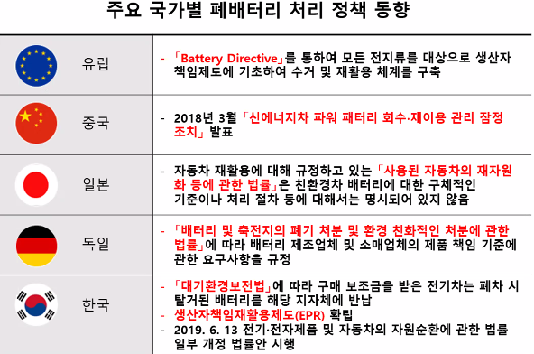 현재 전기자동차를 폐차할 때 배터리를 구매 보조금을 준 지방자치단체에 반납하고 있습니다. 이런 폐배터리를 재사용하거나 재활용하지 않고 폐기할 경우 여러 가지 문제가 발생할 수 있습니다.