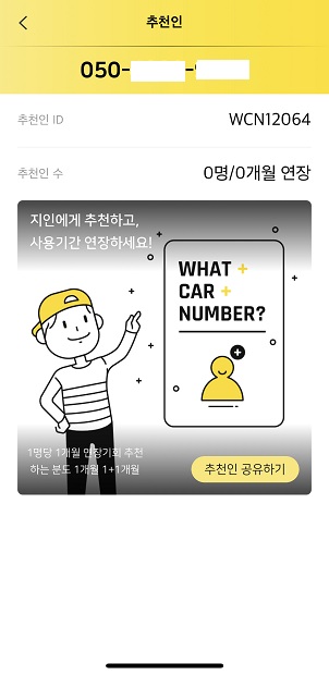 Cf. 카드 등록할 때 추천인ID 입력하시면 ID(사용자&추천자) 당 1개월 연장 가능합니다.