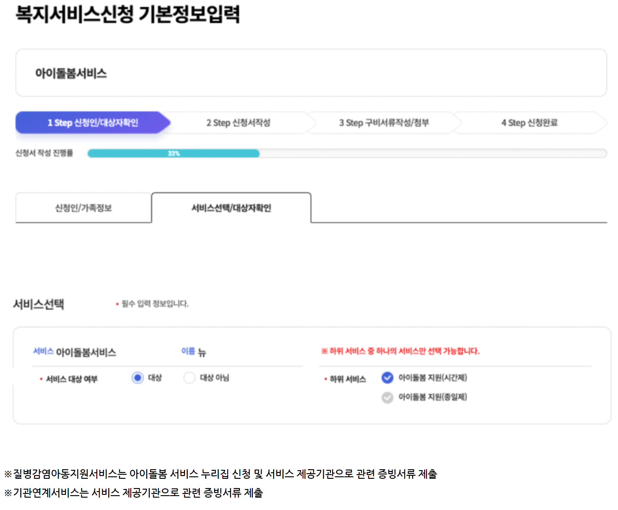 step.4 정부 지원받을 '아이돌봄 서비스' 종류 선택