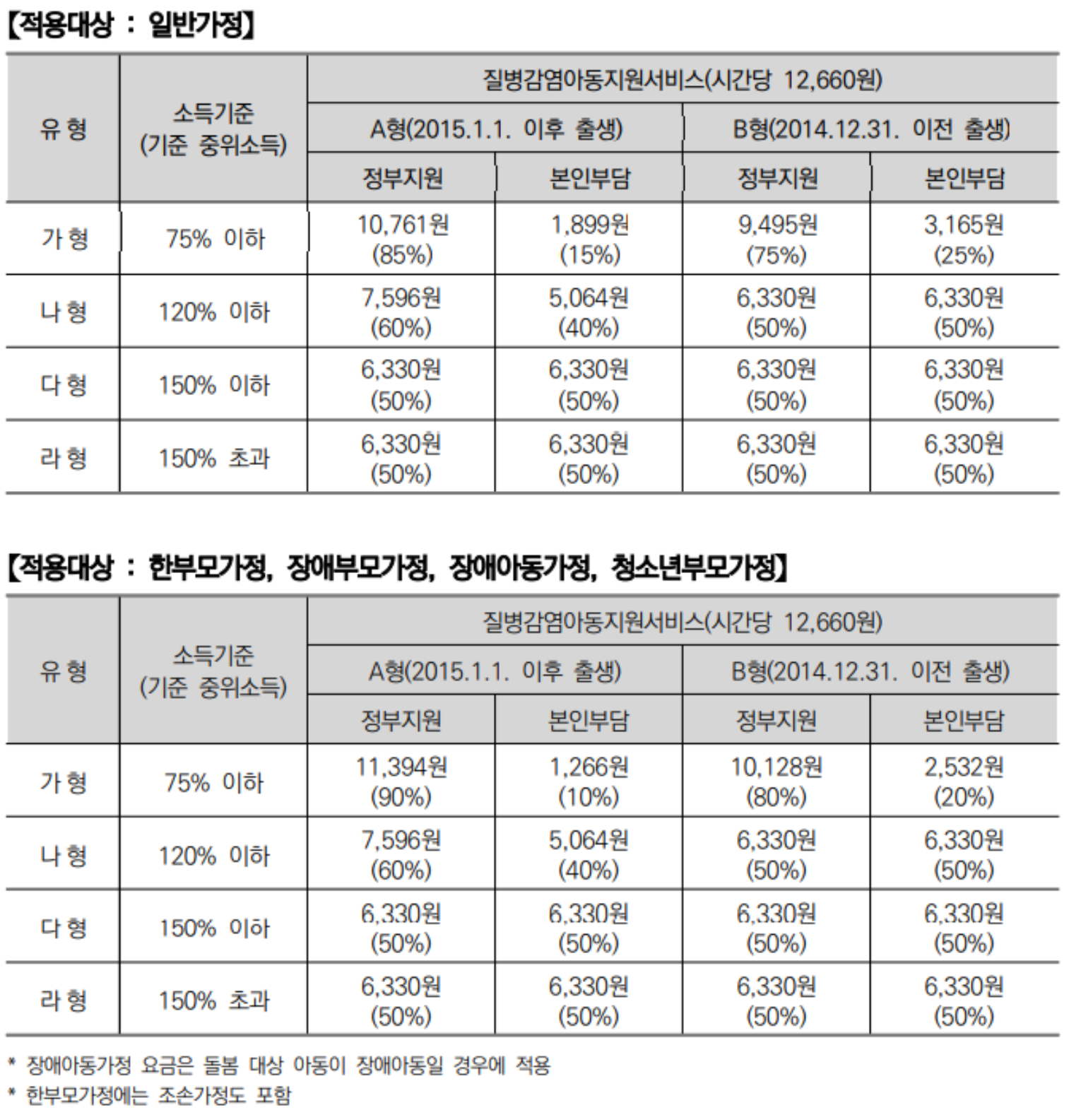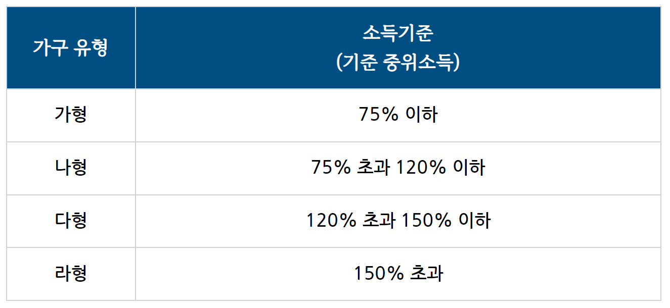 또한, 가구 소득기준에 따라 정부지원율이 차등 적용됩니다.