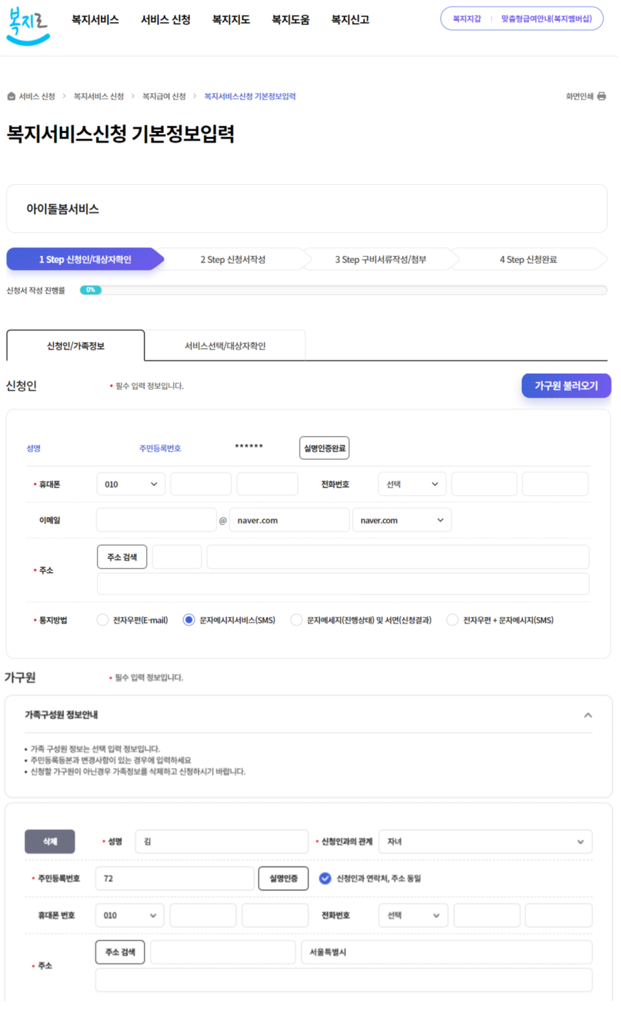 step.3 신청인/가족정보 입력