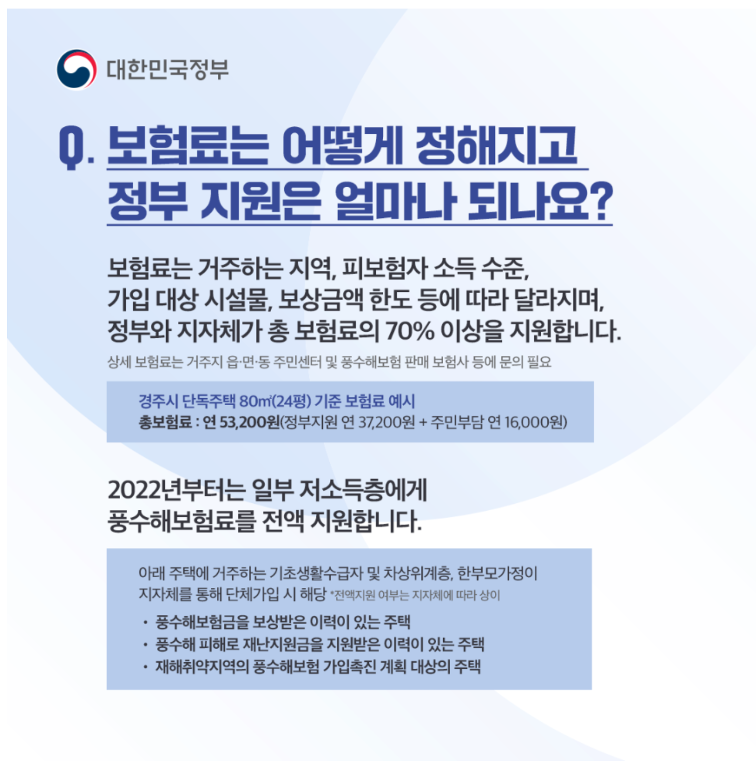 2022년부터는 일부 저소득층에게 풍수해보험료를 전액 지원합니다.