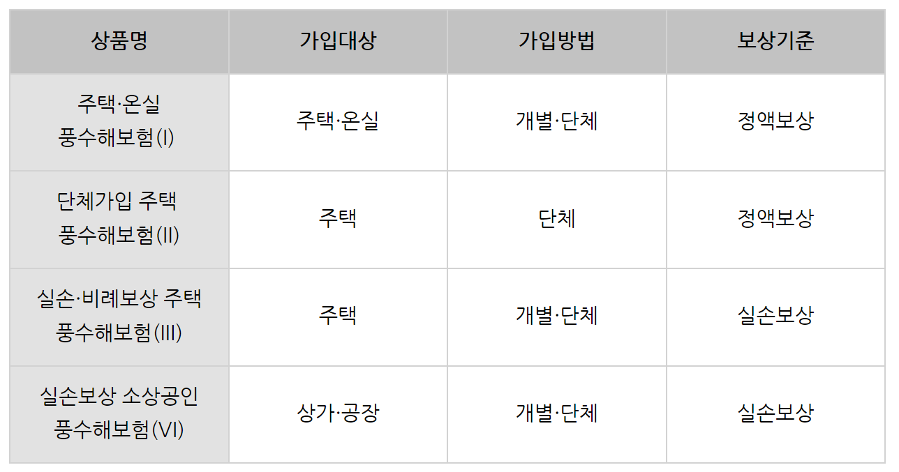 Q. 풍수해보험 상품에는 어떤 것들이 있나요?