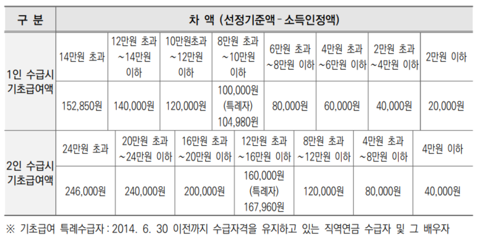 다만, 가구 유형과 소득인정액 차이에 따라 기초급여액이 감액될 수 있습니다.