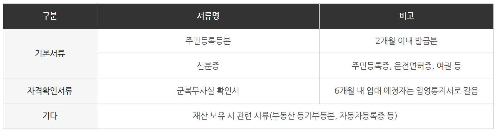 ✔ 금융회사 채무를 3개월 이상 연체하고 있는 ✔ 군복무자 또는 ✔ 6개월 내 입대 예정자에게 지원합니다.