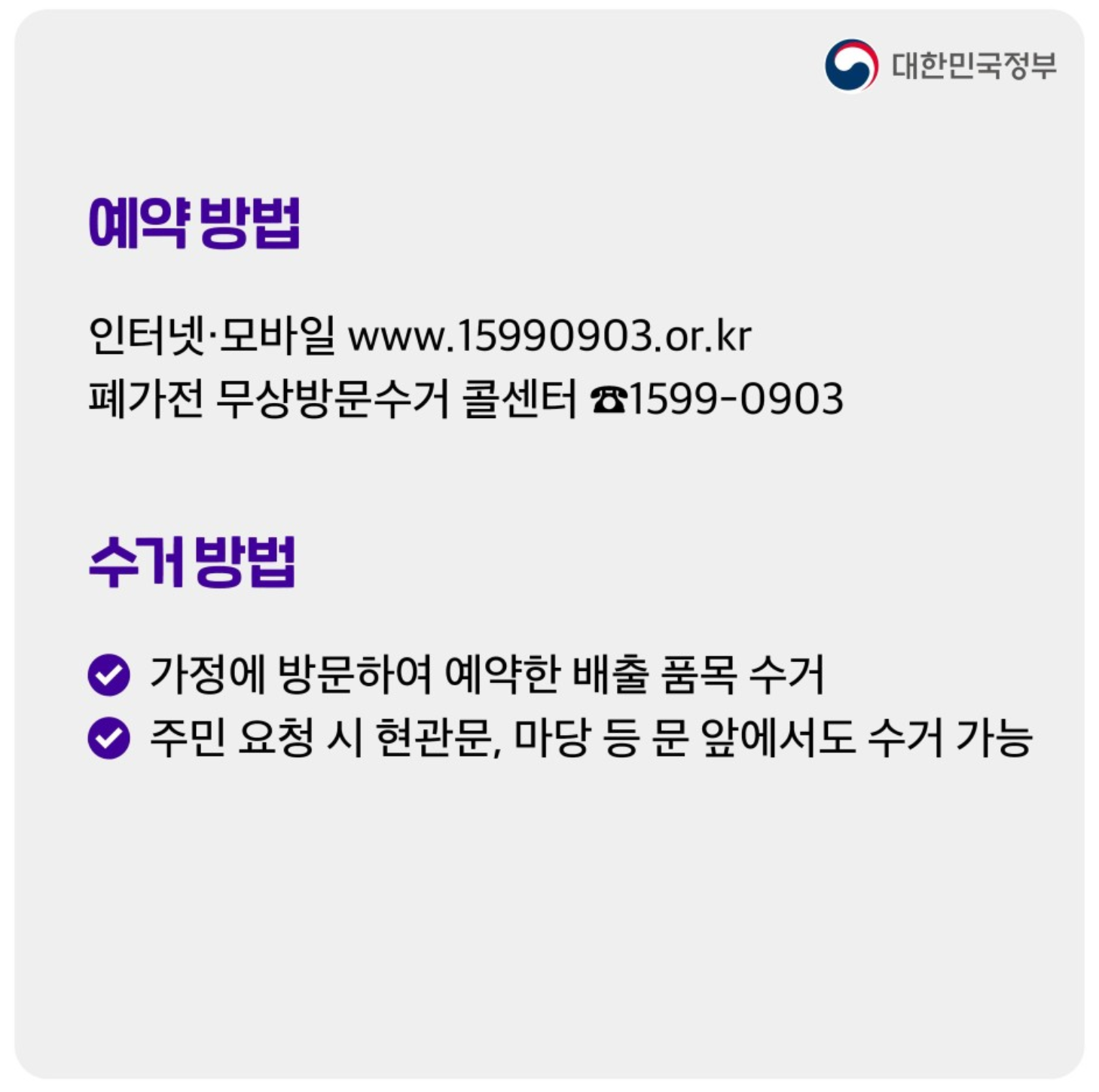 - 주민 요청 시 현관문, 마당 등 문 앞에서도 수거 가능