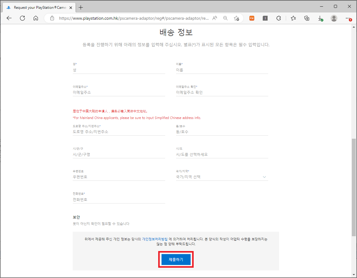 5) '배송 정보'를 입력하고 '제출하기'를 클릭합니다.