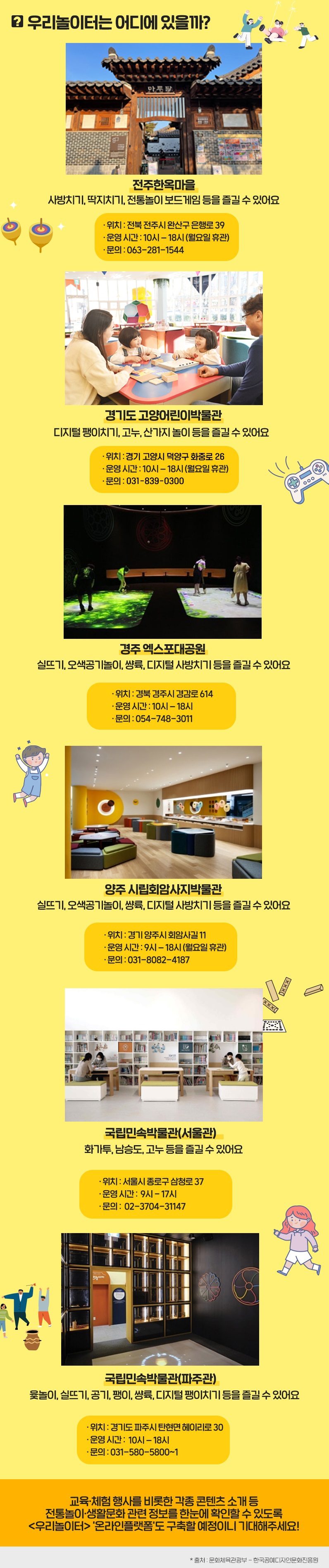 아이들에겐 새로운 경험을,어른들에겐 추억의 여행으로 갈 수 있는 ‘우리놀이터’에 대해 알려드립니다!