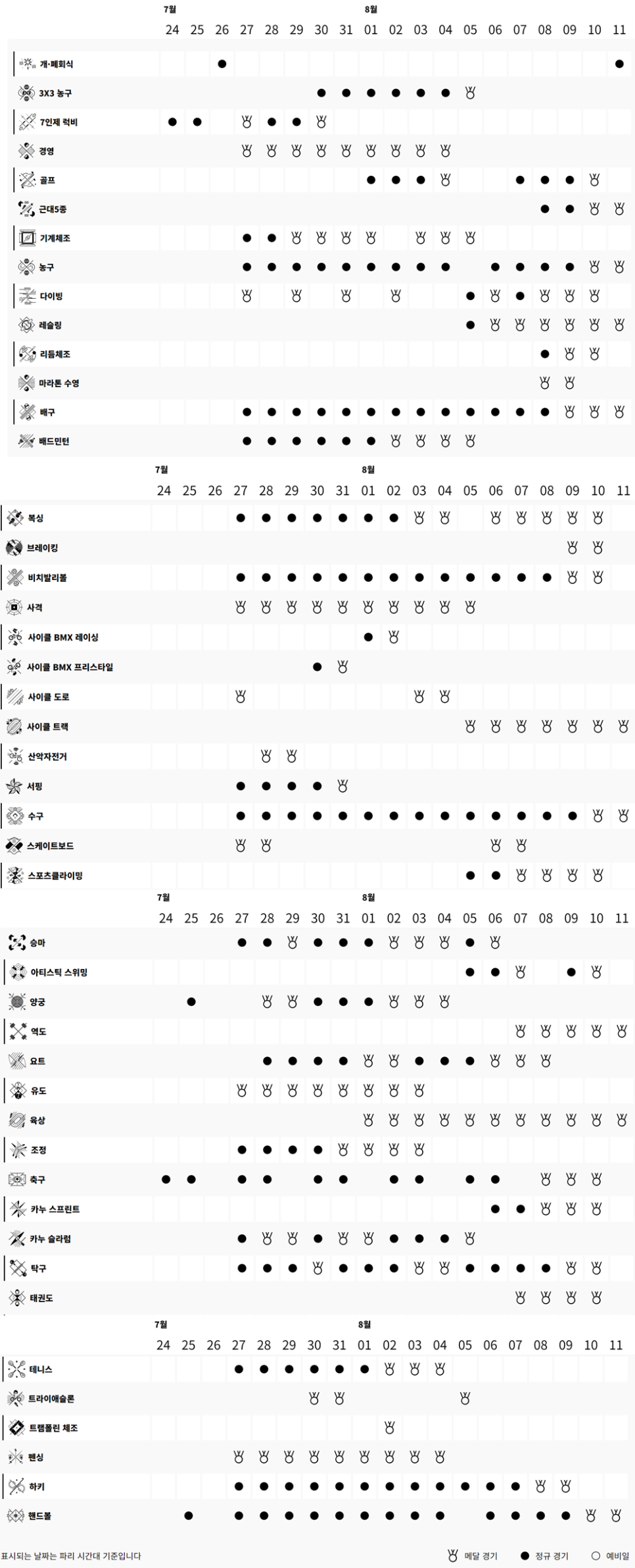 ✔ 2024 파리올림픽 경기일정